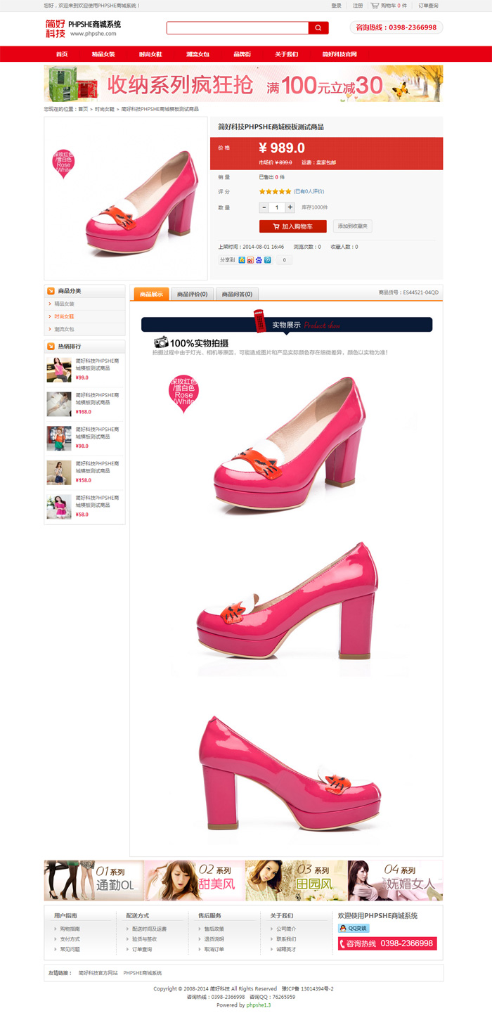 當前版本:PHPSHE B2C商城系統(tǒng)v1.3(build 20140801 UTF8)