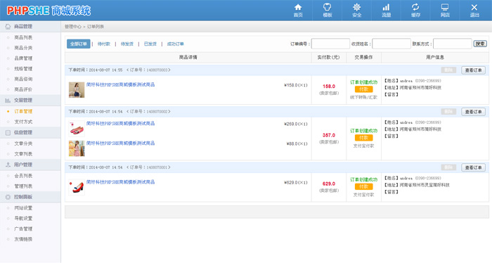 PHPSHE商城系統(tǒng)是將商品管理、品牌管理、在線購物、訂單管理、支付管理、文章管理、會員管理、客戶咨詢評價、數(shù)據(jù)統(tǒng)計等功能相結(jié)合,并提供了簡易的操作、實用的功能,快速讓用戶建立獨立個性化的網(wǎng)上商店,為用戶提供了一個低成本、高效率的網(wǎng)上商城建設(shè)方案。操作簡單好用,會上網(wǎng)者就可以操作。