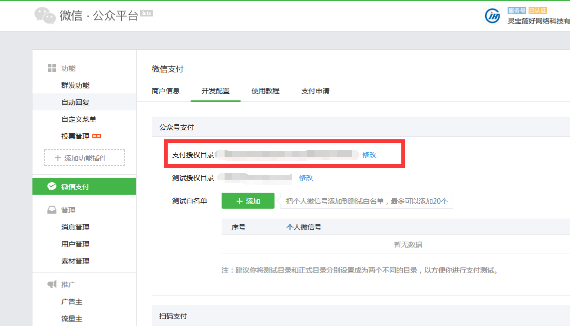 登錄微信公眾平臺,設(shè)置微信支付授權(quán)目錄,即PHPSHE商城后臺微信支付中的【支付授權(quán)目錄】