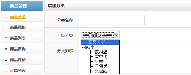 1.進(jìn)入“商品分類”頁面,添加分類,如下圖所示:
