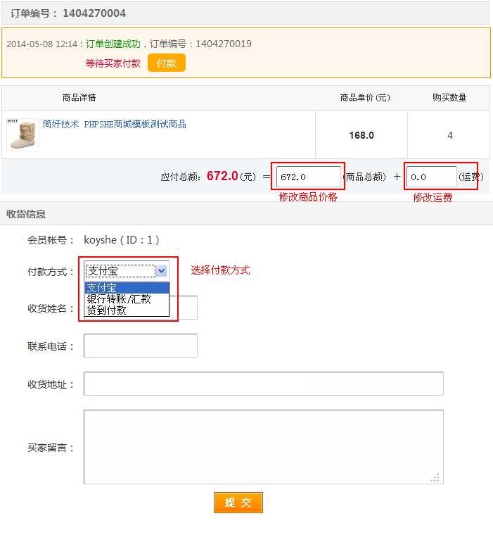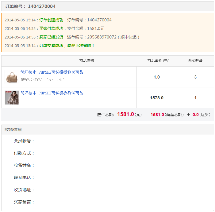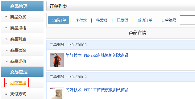 PHPSHE商品訂單管理