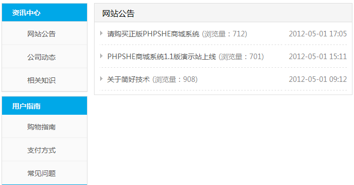 4.點擊“文章列表”,在這里可以新增、修改、刪除 前臺“資訊中心”文章內容,如下圖所示: