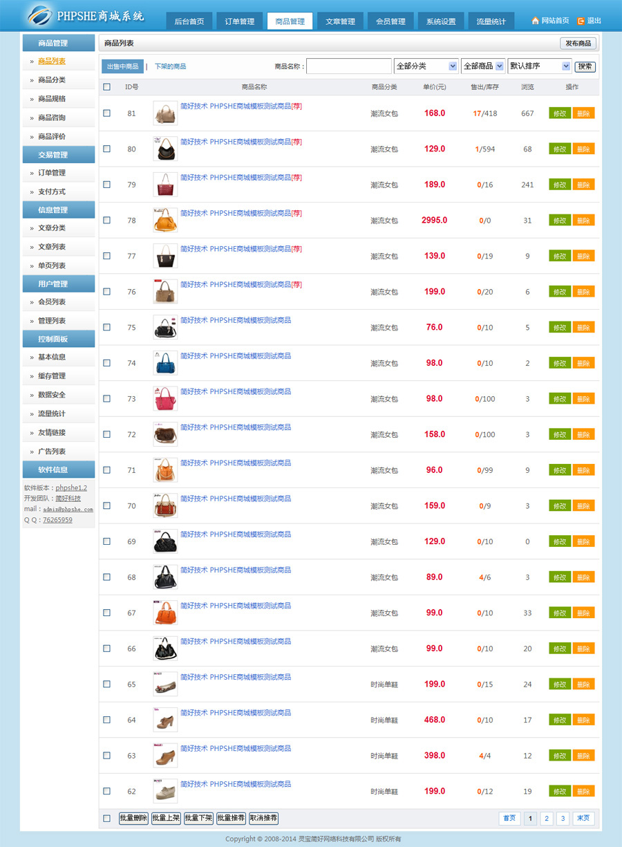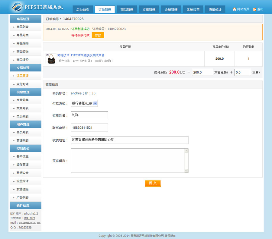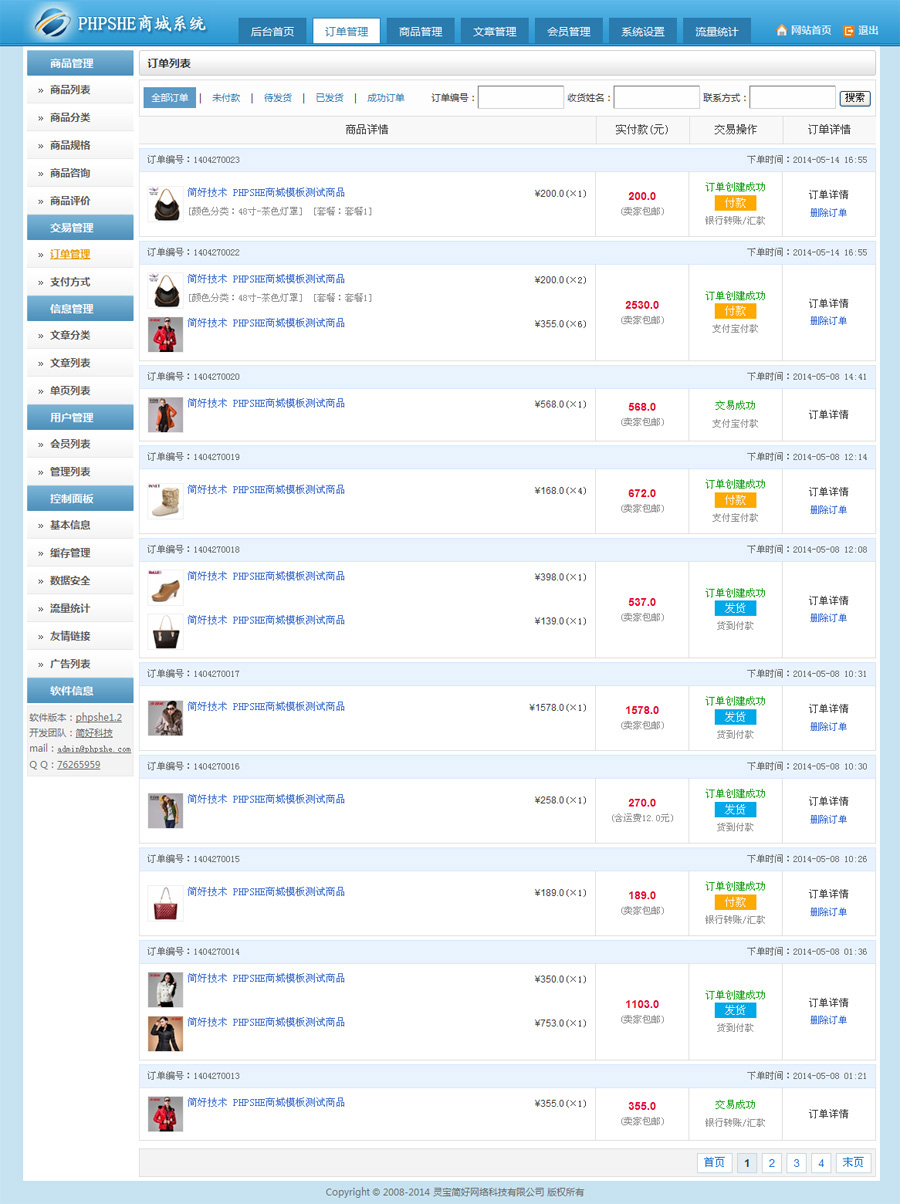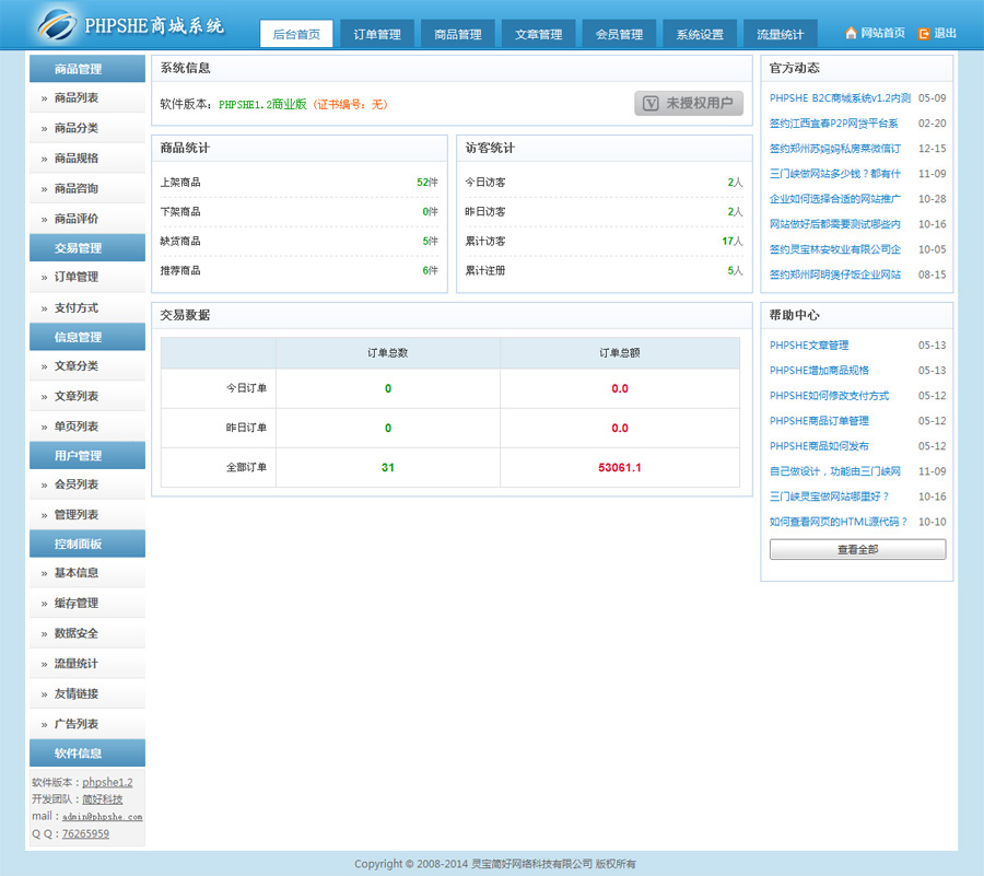 當(dāng)前版本:PHPSHE B2C商城系統(tǒng)v1.2(build 20140519 UTF8)