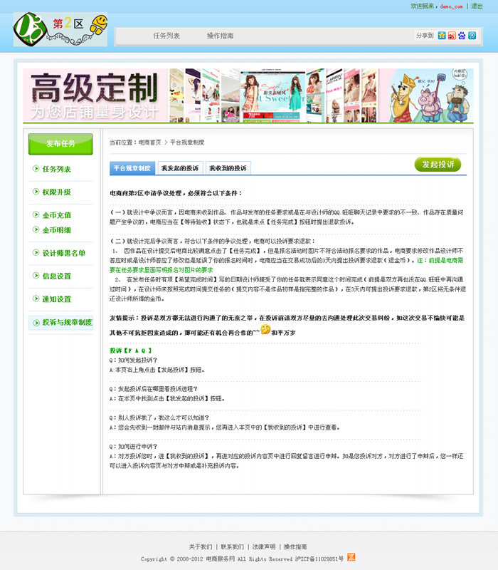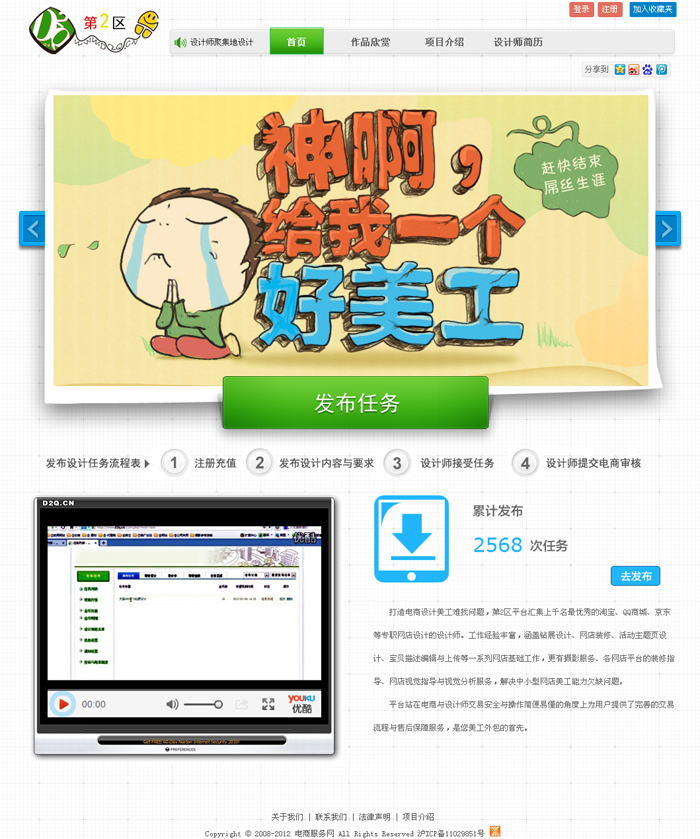 第2區(qū)成立于2009年9月,是國內(nèi)電商行業(yè)專業(yè)的設(shè)計(jì)師流程化在線管理軟件與第3方設(shè)計(jì)服務(wù)商。以服務(wù)網(wǎng)店為中心,致力于為店主提供優(yōu)秀的設(shè)計(jì)師流程化管理軟件與第3方設(shè)計(jì)服務(wù)為一體的解決方案,讓設(shè)計(jì)變的更簡單。第2區(qū)始終秉持“嚴(yán)謹(jǐn)務(wù)實(shí)精益求精”的產(chǎn)品研發(fā)理念,致力于為用戶提供更好的產(chǎn)品體驗(yàn)和服務(wù),始終圍繞電商與設(shè)計(jì)師溝通難找美工難進(jìn)行持續(xù)的技術(shù)創(chuàng)新,現(xiàn)已獨(dú)立開發(fā)了具有自主知識產(chǎn)權(quán)的(易設(shè)計(jì))軟件,為眾多網(wǎng)商提供設(shè)計(jì)師流程化管理服務(wù)。