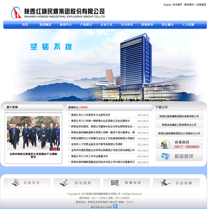 陜西紅旗民爆集團(tuán)股份有限公司是由陜西紅旗民爆集團(tuán)有限責(zé)任公司整體變更設(shè)立的股份有限公司,是集民爆產(chǎn)品研發(fā)、生產(chǎn)、銷售和爆破服務(wù)一體化的國有控股企業(yè),是陜西省內(nèi)成立最早的民爆企業(yè)集團(tuán),也是國內(nèi)最早從事工業(yè)炸藥生產(chǎn)的企業(yè)之一。